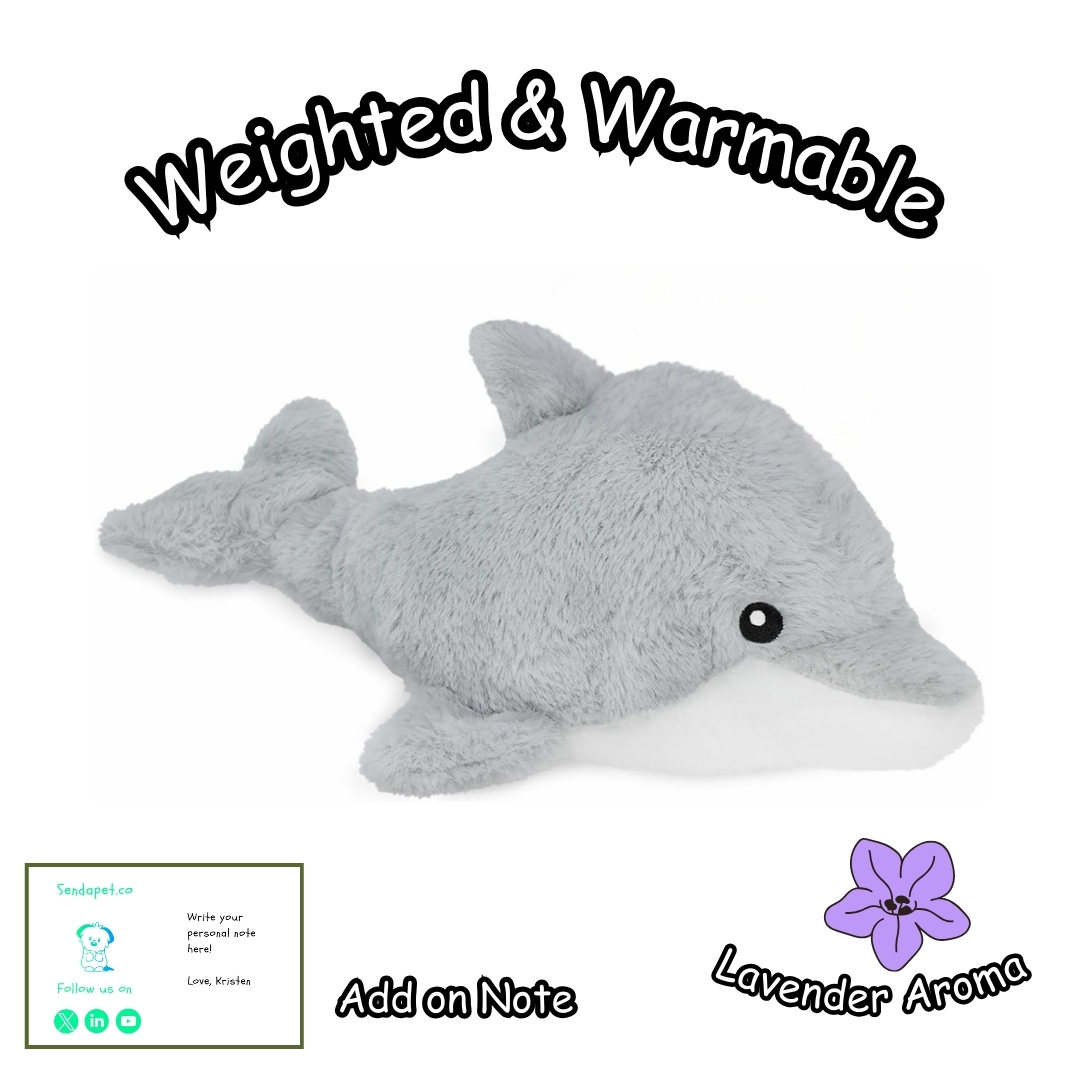 Warm-able Weighted Dolphin Stuffed Animal Anxiety Plushie Emotional Support Cuddly Soft and Sensory Toy Add a Note Card Lavender Aroma