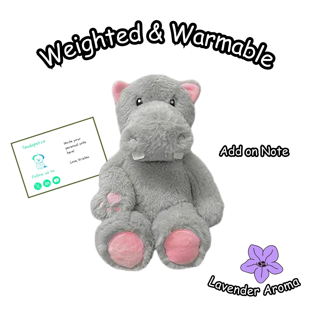 Warm-able Weighted Hippo Stuffed Animal Anxiety Plushie Emotional Support Cuddly Soft and Sensory Toy Add a Note Card Lavender Aroma